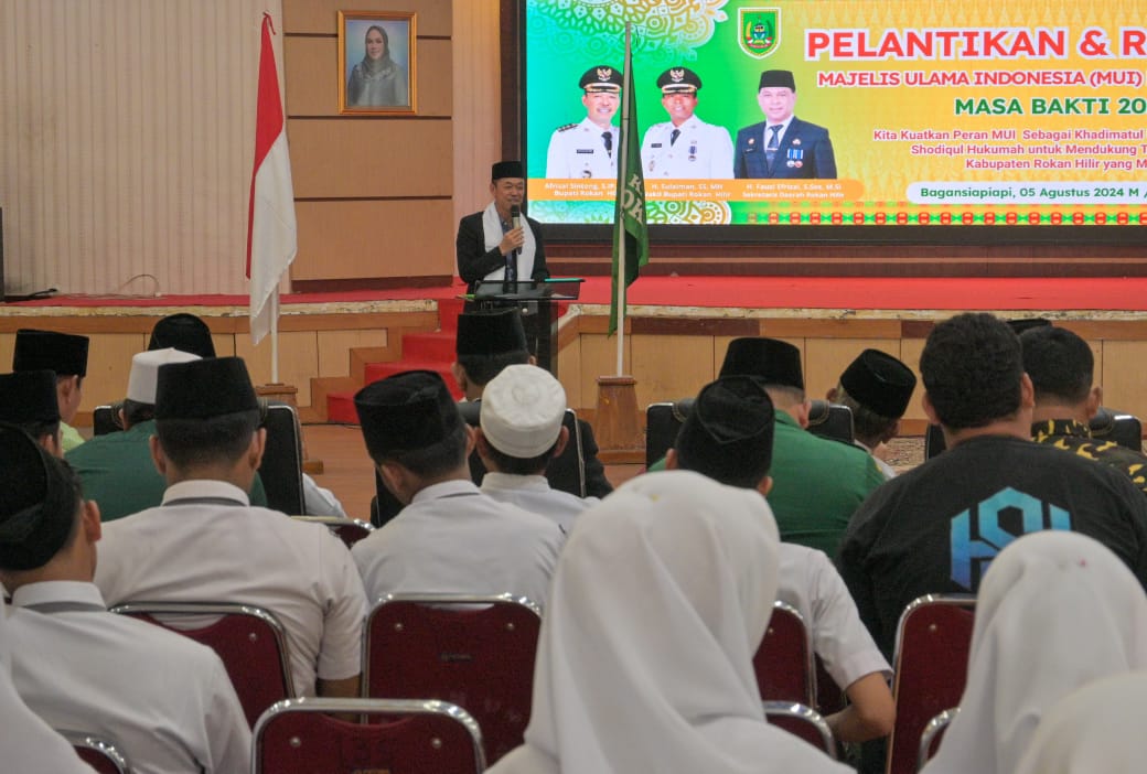 Acara pelantikan dimulai dengan menyanyikan lagu Indonesia Raya dan Mars Rokan Hilir, lalu dilanjutkan pembacaan ayat suci Al-Quran oleh Qori Juara 1 MTQ tingkat Kabupaten Tahun 2024 yang berasal dari Rokan Hilir. Dalam sambutannya Bupati Rohil Afrizal Sintong mengucapkan selamat atas dilantiknya Kepengurusan MUI Rohil yang baru semoga kedepannya bisa bekerja sama dengan Pemkab Rohil.