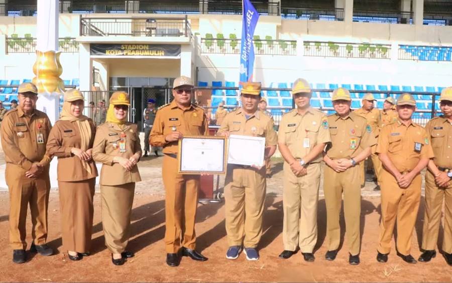PRABUMULIH (SUMSEL), SUARAPANCASILA.ID — Wali Kota Prabumulih, H. Arlan, memimpin Apel Bulanan yang dirangkaikan dengan Penyerahan Piagam Penghargaan atas Keberhasilan Pengukuran Indeks Harmoni Indonesia (IHAL) Tahun 2025. Kegiatan berlangsung di Halaman Kantor Pemerintah Kota Prabumulih dengan hikmat dan penuh antusiasme seluruh peserta apel, (1/12/2025).