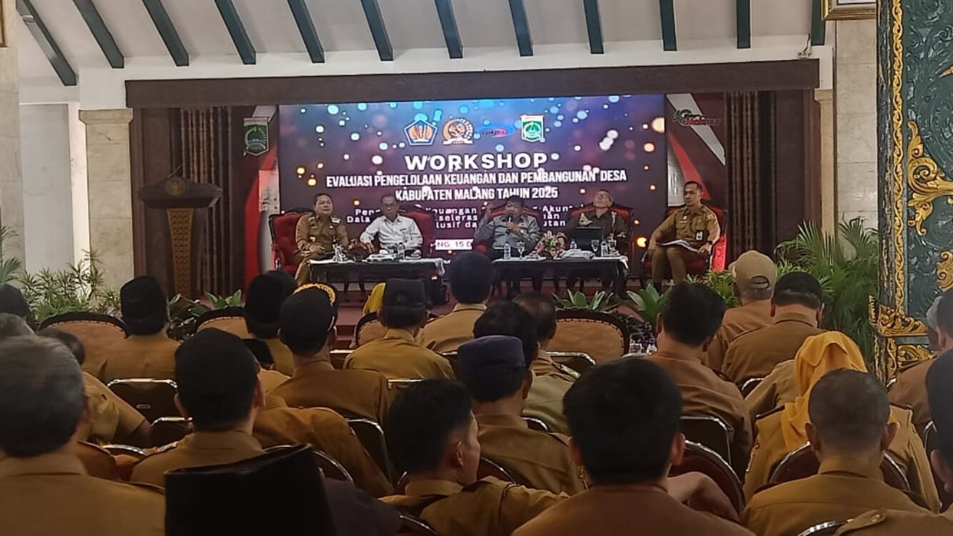 Workshop yang menekankan akuntabilitas dan transparansi penggunaan Dana Desa ini berlangsung di Pendopo Agung Kabupaten Malang, Senin (15/12/2025).