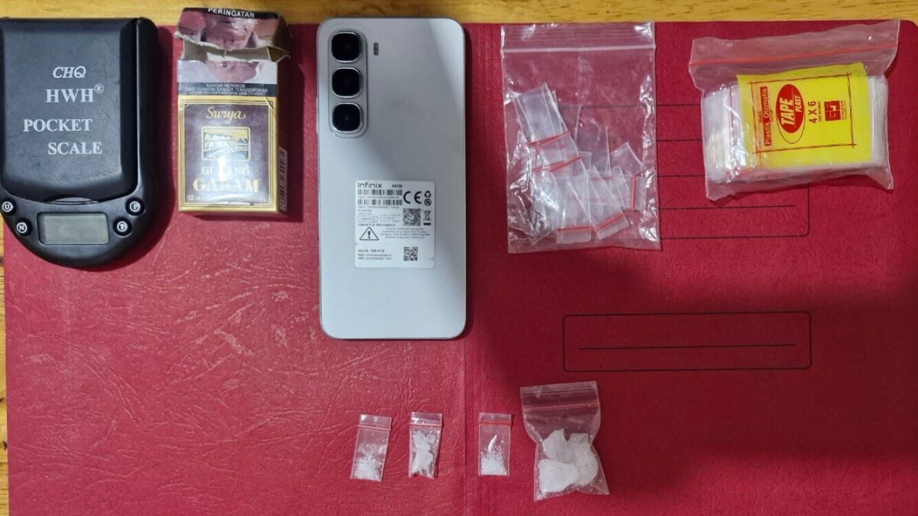 Dalam pengungkapan tersebut, polisi menyita empat paket narkotika jenis sabu dengan berat kotor 6,1 gram, beserta sejumlah barang bukti lainnya berupa dua pack plastik klip bening, satu unit timbangan digital, satu kotak rokok merek Gudang Garam, satu unit sepeda motor Honda Beat warna hitam tanpa nomor polisi, serta satu unit handphone.