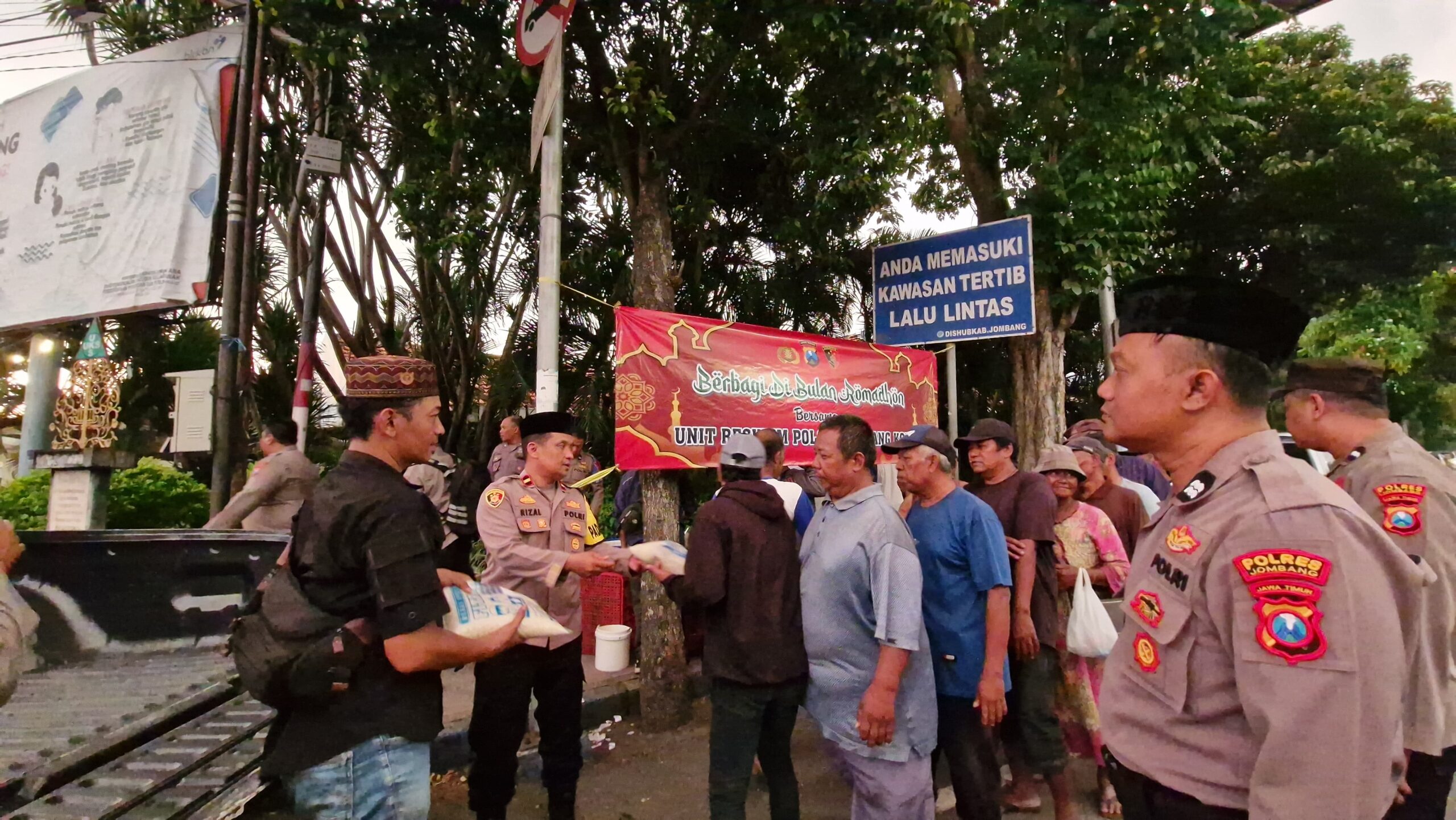 JOMBANG (JATIM).SUARAPANCASILA.ID – Kepolisian Sektor (Polsek) Jombang menyalurkan sedikitnya 150 paket sembako kepada para tukang becak dalam kegiatan buka puasa bersama yang digelar di depan Pos Pelayanan Terpadu, Jalan KH Wahid Hasyim, Jumat (13/3/2026) sore.