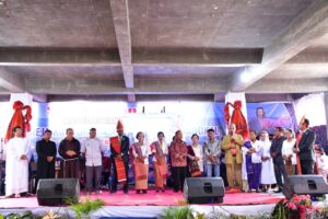 KAB SAMOSIR (SUMUT) SUARAPANCASILA.ID –Bupati Samosir Vandiko T. Gultom bersama Uskup Agung Medan Kornelius Sipayung meneken prasasti Peresmian dan Pemberkatan Gereja Katolik Stasi Kristus Raja Sangkal Paroki Santo Antonio Maria Claret Tomok, 31/08.