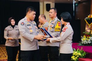 Kesempatan rakernis tersebut, Kabid Humas Kombes Sunarto memberikan tropi dan penghargaan kepada Kasi Humas berprestasi dan para pemenang lomba.