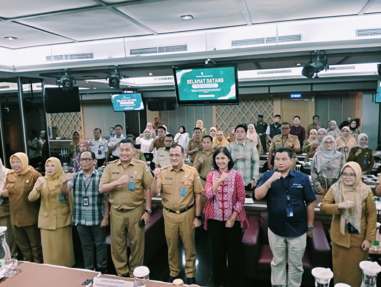 Turut hadir didalam kegiatan ini Kepala Pelaksana Harian Biro Perekonomian Setda Provinsi Sumsel Amrayadi N, SP., M.Si, jajaran dari Biro Perekonomian Setda Provinsi Sumsel, Perwakilan dari Organisias Perangkat Daerah (OPD) yang ada dilingkungan Pemprov Sumsel yakni perwakilan dari Dinas Perumahan Rakyat dan Kawasan Permukiman, Perwakilan dari Dinas Perhubungan Provinsi Sumsel, Perwakilan dari Biro Umum dan Perlengkapan Provinsi Sumsel, Perwakilan dari Dinas Perindustrian, Perwakilan dari Dinas Pekerjaan Umum Bina Marga dan Tata Ruang (PUBMTR) Provinsi Sumsel, dan undangan lainnya.
