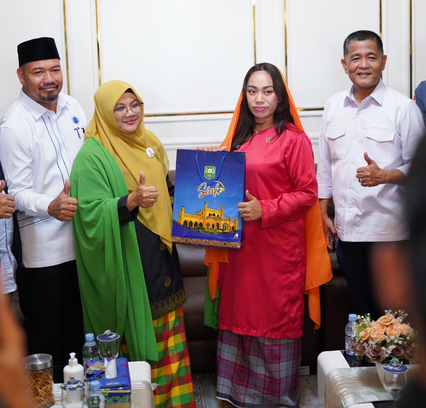 SIAK (RIAU), SUARAPANCASILA.ID – Bupati Siak, Afni Zulkifli, menerima kunjungan Utusan Khusus Presiden RI Bidang Pariwisata, Zita Anjani di Kabupaten. Utusan Khusus di ajak melihat bangunan cagar budaya seperti Istana Siak, Museum Balairung Sri atau Balai Kerapatan Tinggi dan Tangsi Belanda.