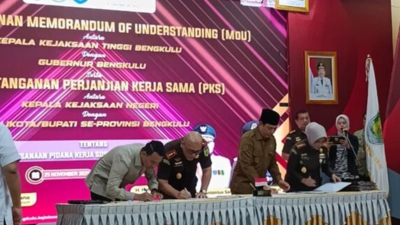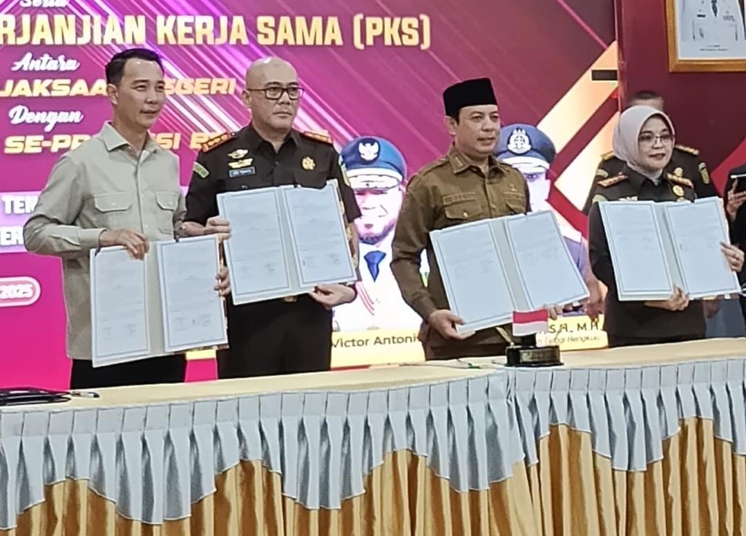 REJANG LEBONG (BENGKULU), SUARAPANCASILA.ID – Penandatanganan Memorandum of Understanding (MoU)antara Kejaksaan Tinggi (Kejati) Bengkulu dan Pemerintah Provinsi Bengkulu digelar di BalaiRaya Semarak Bengkulu, Selasa (25/11/2025) pukul 08.00 WIB. Kegiatan dilanjutkan denganpenandatanganan Perjanjian Kerja Sama (PKS) antara para Kepala Kejaksaan Negeri (Kajari) danbupati maupun wali kota se-Provinsi Bengkulu, termasuk Bupati Rejang Lebong.