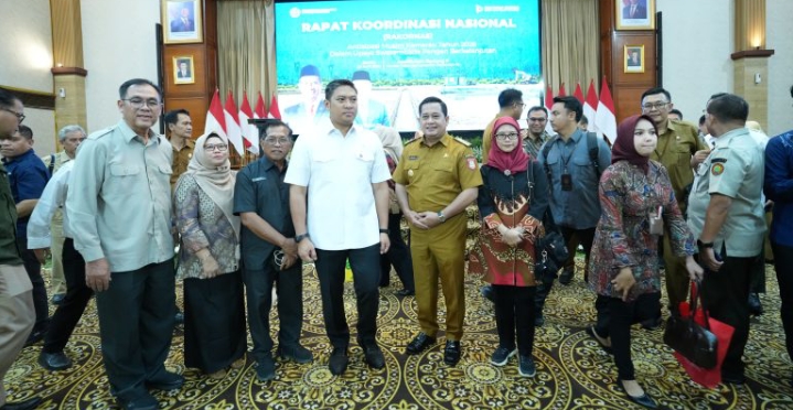 JAKARTA– SUARAPANCASILA.ID – Dalam upaya memperkuat langkah antisipatif dalam menghadapi potensi kekeringan yang dapat berdampak pada produktivitas sektor pertanian nasional, Bupati Banyuasin Dr H. Askolani, SH MH, bersama Bupati se-Indonesia menghadiri Rapat Koordinasi Nasional (Rakornas) Mitigasi Kekeringan Lahan Pertanian Tahun 2026 yang di inisiasi oleh Pemerintah pusat melalui Kementerian Pertanian yang berlangsung di Auditorium Kementan RI Senin (20/4/2026).