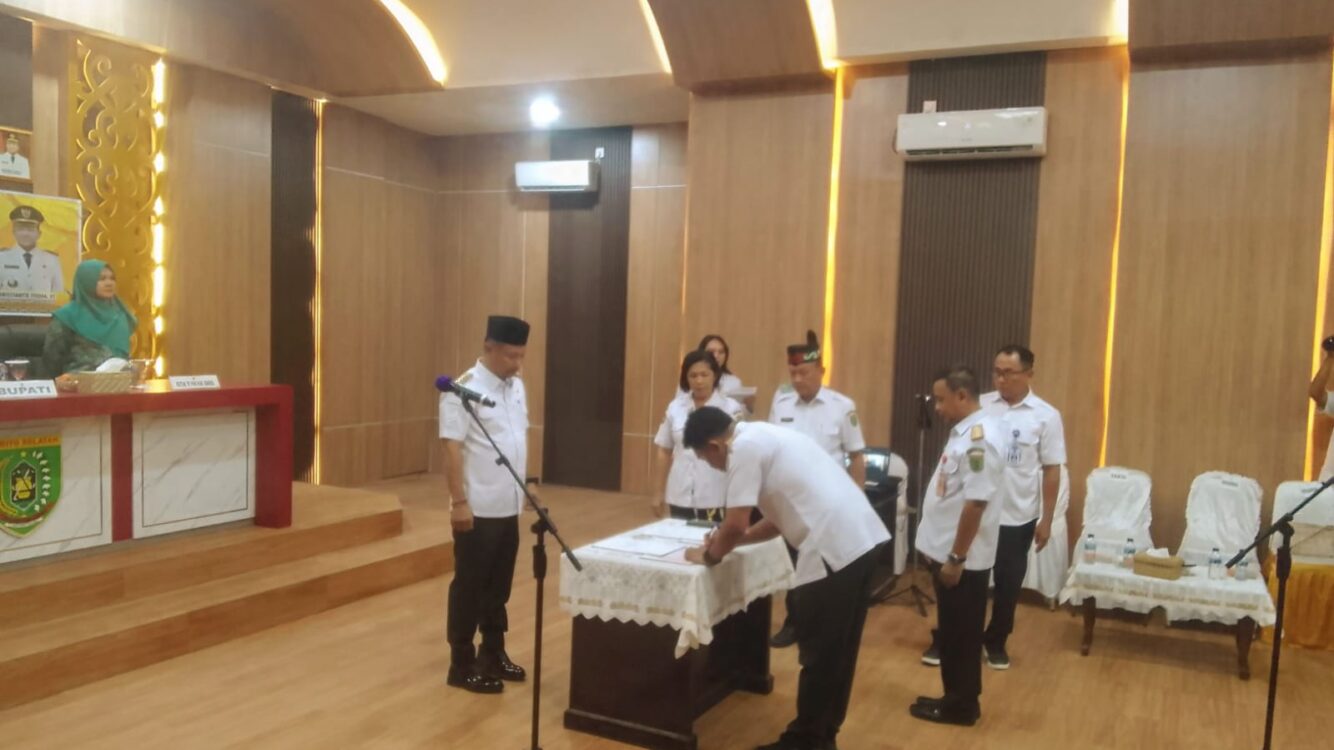 BARITO SELATAN (KALTENG), SUARAPANCASILA.ID – Bupati H. Eddy Raya Samsuri melantik dan mengukuhkan sejumlah pejabat eselon 2 lingkup Pemerintah Kabupaten Barito Selatan, juga sekaligus penyerahan SK sejumlah Pelaksana Tugas (Plt) Kepala Dinas di Kabupaten Barito Selatan, Rabu 7 Oktober 2025 di Aula Kantor Bupati Kabupaten Barito Selatan.
