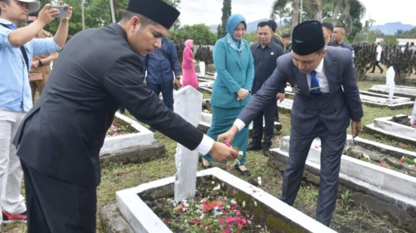 “Kita berdiri di sini bukan hanya untuk menabur bunga, tetapi juga menabur doa dan tekad untuk melanjutkan perjuangan mereka,” ujarBupati Fikri.