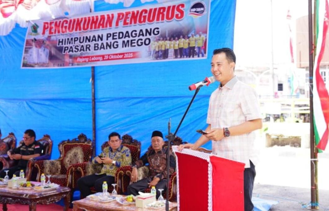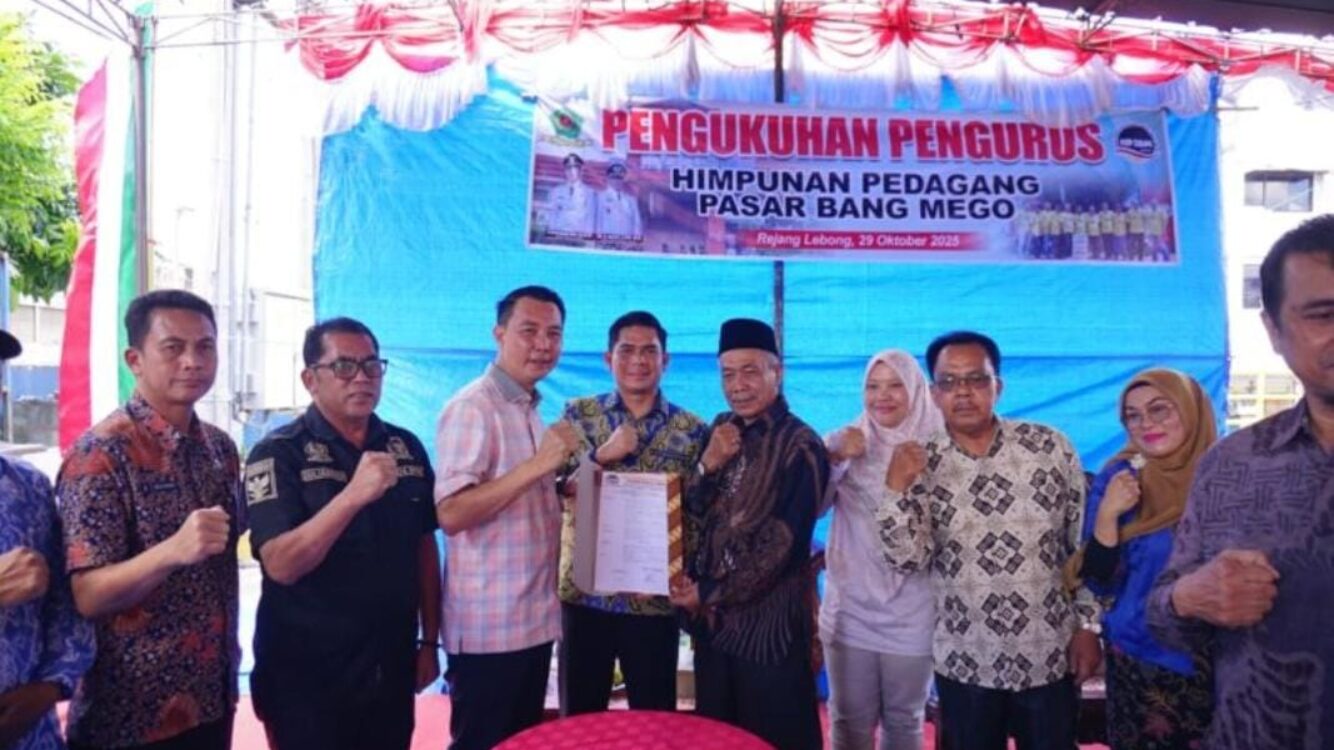 REJANG LEBONG (BENGKULU), SUARAPANCASILA.ID -Bupati Rejang Lebong H. M. Fikri Thobari, SE., M.AP. secara resmi mengukuhkan PengurusHimpunan Pedagang Pasar Bang Mego (HPPBM) periode 2025–2028, Kamis (30/10/2025).