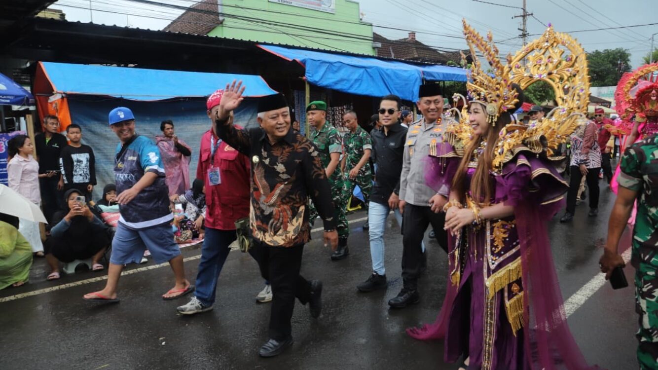Setelah memberangkatkan peserta pertama, Bupati Malang bersama jajaran juga turut mengikuti jalannya karnaval dengan berjalan kaki di tengah peserta dan masyarakat.