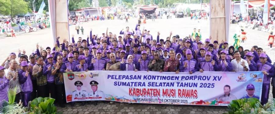 MUSI RAWAS (SUMSEL), SUARAPANCASILA.ID – Bupati Musi Rawas Hj Ratna Machmud menghadiri Pelepasan Kontingen PORPROV XV Sumatera Selatan di Kabupaten Musi Rawas bertempat di Taman Beregam Muara Beliti, Kamis (16/10/2025).