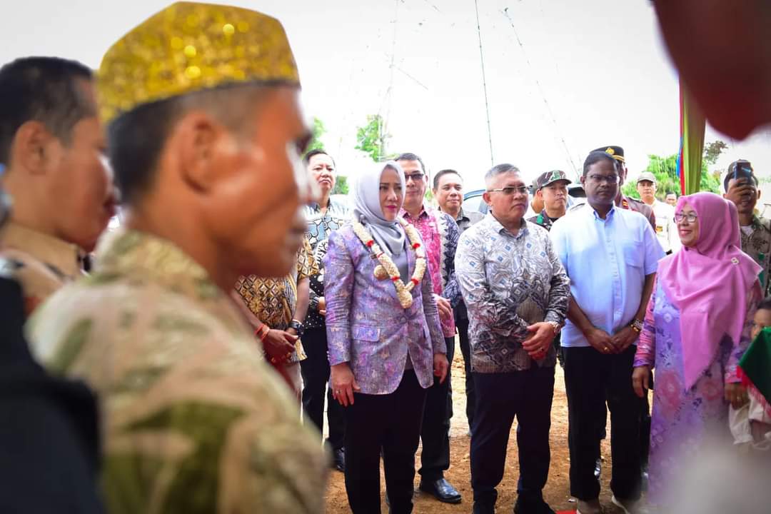 Pada momen itu, Bupati Ratna Machmud menyalurkan bantuan berupa sembako kepada masyarakat di sekitar Desa Muara Kati Baru I Kecamatan TPK.