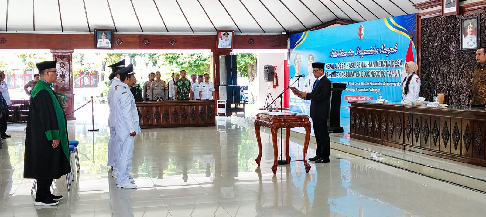 Pelantikan tersebut digelar sebagai bagian dari pengisian kekosongan jabatan kepala desa di sejumlah wilayah Kabupaten Bojonegoro.