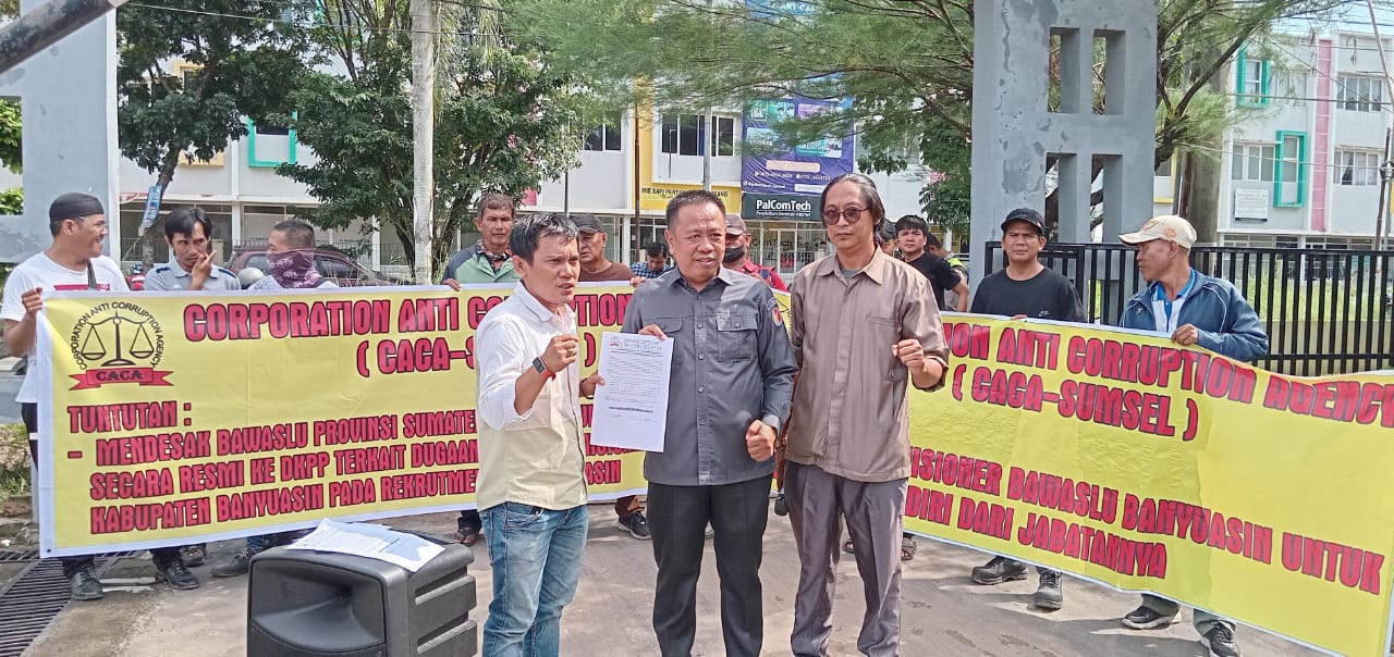 PALEMBANG,SUARAPANCASILA.ID-Palembang – Puluhan Massa Corporation Anti Corruption Agency Sumatera Selatan ( CACA SUMSEL) sambangi Badan Pengawas Pemilu Provinsi Sumatera Selatan (Bawaslu Sumsel) terkait dugaan Setoran Rekrutmen Calon Anggota PPK dan PPS Kabupaten Banyuasin Sumatera Selatan.