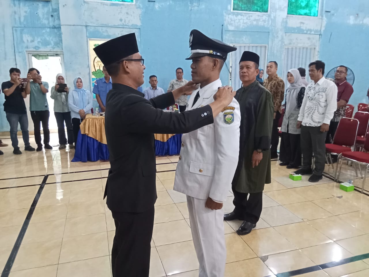 Camat Baturaja Timur Khairuddin Albar, S.STP., M.Si membacakan Surat keputusan Bupati Ogan Komering Ulu nomor : 400.10.2/597/KPTS/XXVII/2025, tentang Pemberhentian Pejabat Kepala Desa dan Pengesahan Pengangkatan Kepala Desa Penganti Antar Waktu Desa Tanjung Kemala Kecamatan Baturaja Timur, acara dilanjutkan dengan pengambilan sumpah janji dan pelantikan Kepala Desa.