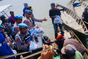 Karo Provoost Div Propam Polri Susuri Sungai Musi Berbagi Sembako ke Nelayan dan Masyarakat