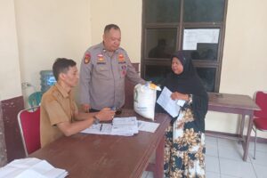 Bhabinkamtibmas Polsek Rangkasbitung Polres Lebak Monitoring Penyaluran Bantuan Beras Di Desa Jatimulya
