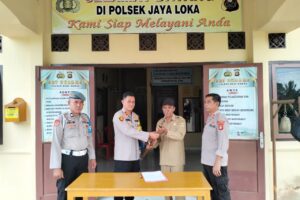 Polsek Jayaloka Terima Penyerahan Satu Pucuk Senpira dari Kades Donorejo