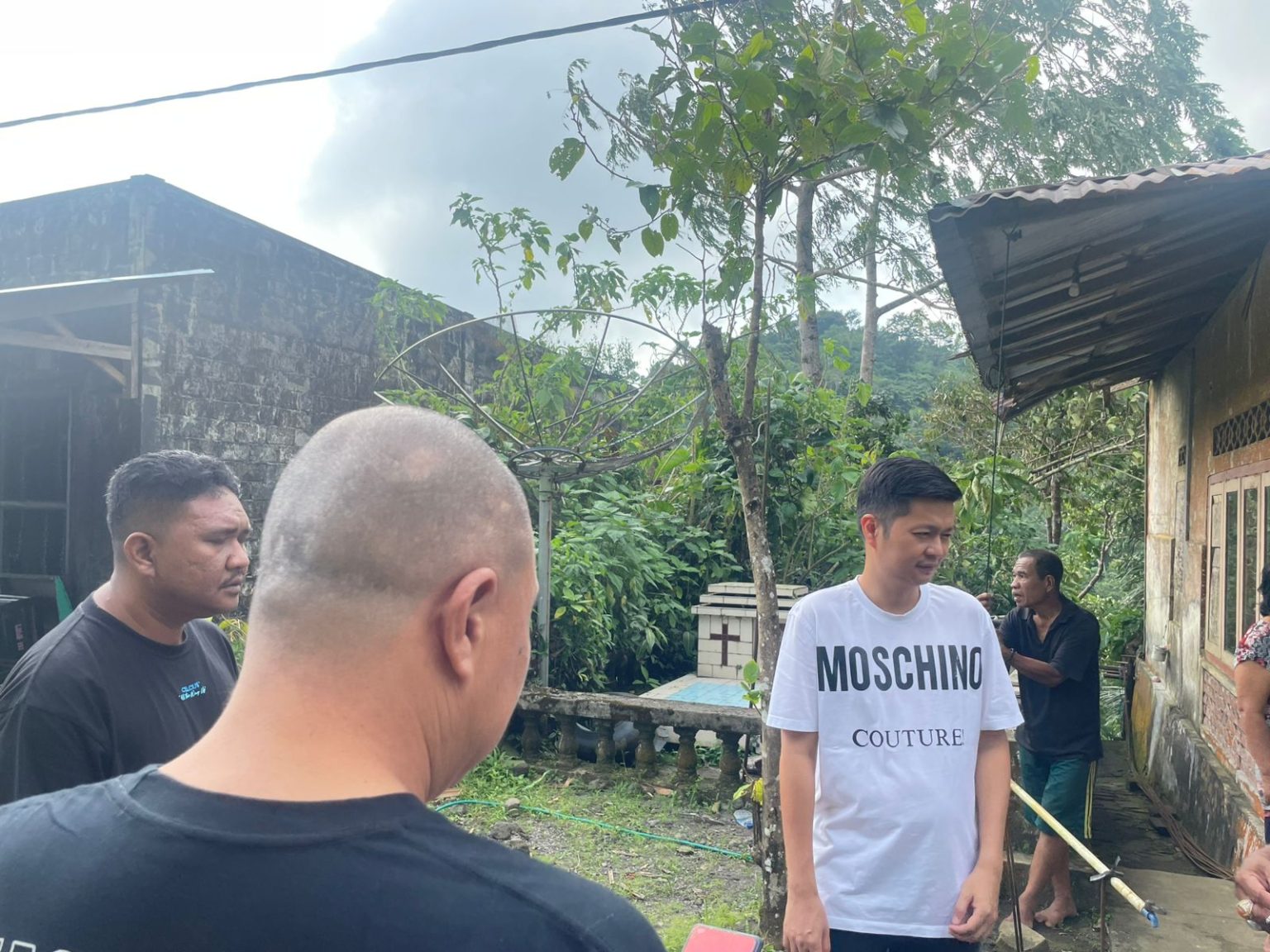 Mario Seliang SE, bersama dengan Denny Roy Tampi SE, Bendahara DPC PDI Perjuangan Kabupaten Sangihe, mengunjungi sejumlah keluarga yang rumahnya mengalami kerusakan.