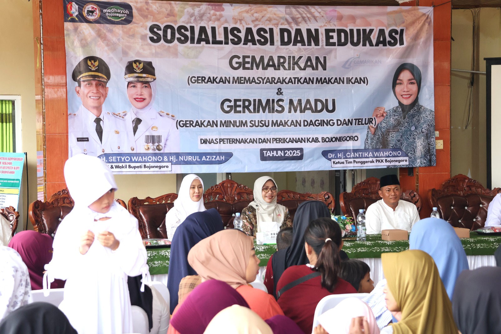 BOJONEGORO (JATIM), SUARAPANCASILA.ID — Pemerintah Kabupaten (Pemkab) Bojonegoro terus mendorong peningkatan kualitas gizi masyarakat melalui dua program unggulan, yaitu Gerakan Masyarakat Makan Ikan (Gemarikan) dan Gerakan Minum Susu, Makan Daging dan Telur (Gerimis Madu).