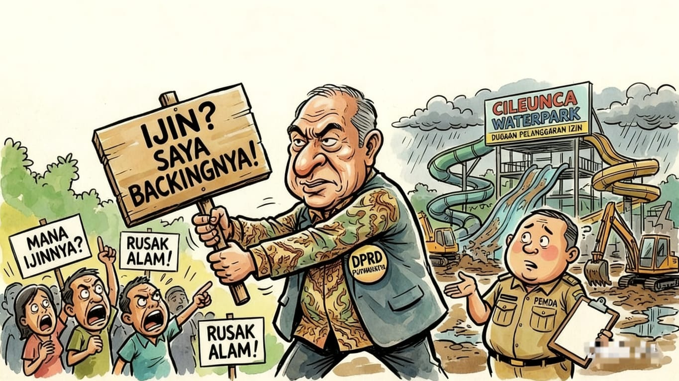 PURWAKARTA (JABAR), SUARAPANCASILA.ID – Polemik dugaan pelanggaran izin pembangunan Cileunca Waterpark di Desa Cileunca, Kecamatan Bojong, Purwakarta semakin terkuak ke permukaan. Selain sorotan terkait status lahan yang diduga berada di kawasan pertanian sesuai peruntukan tata ruang, kini muncul isu serius yang mengemuka di tengah masyarakat: adanya dugaan keterlibatan oknum anggota DPRD Purwakarta yang disebut-sebut menjadi “backing” atau pelindung bagi proyek wisata tersebut.