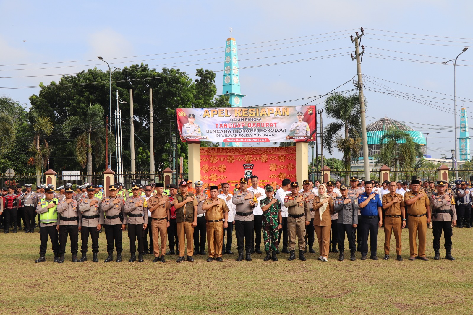 Apel Kesiapan Dalam Rangka Tanggap Darurat Bencana Hidrometeorologi, dihadiri serta melibatkan juga beberapa pihak stakeholder seperti TNI, kemudian BPBD, Sat Pol PP Damkar, Dinkes, Damkar dan Dinsos, serta digelar di Halaman Apel Mapolres Musi Rawas, Selasa (4/11/2025).