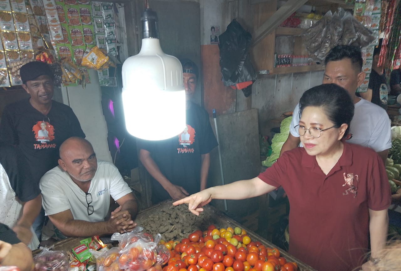 SANGIHE ( SULUT ) SUARAPANCASILA.ID-Pasar Towo’e di Kelurahan Sawang Bendar, Kecamatan Tahuna, sontak heboh pada hari Selasa, 8 Oktober 2024, sekitar pukul 08.00 WITA. Warga terkejut melihat Dr. Rinny Tamuntuan, calon bupati Kepulauan Sangihe, berbelanja di pasar terbesar di wilayah itu secara langsung.