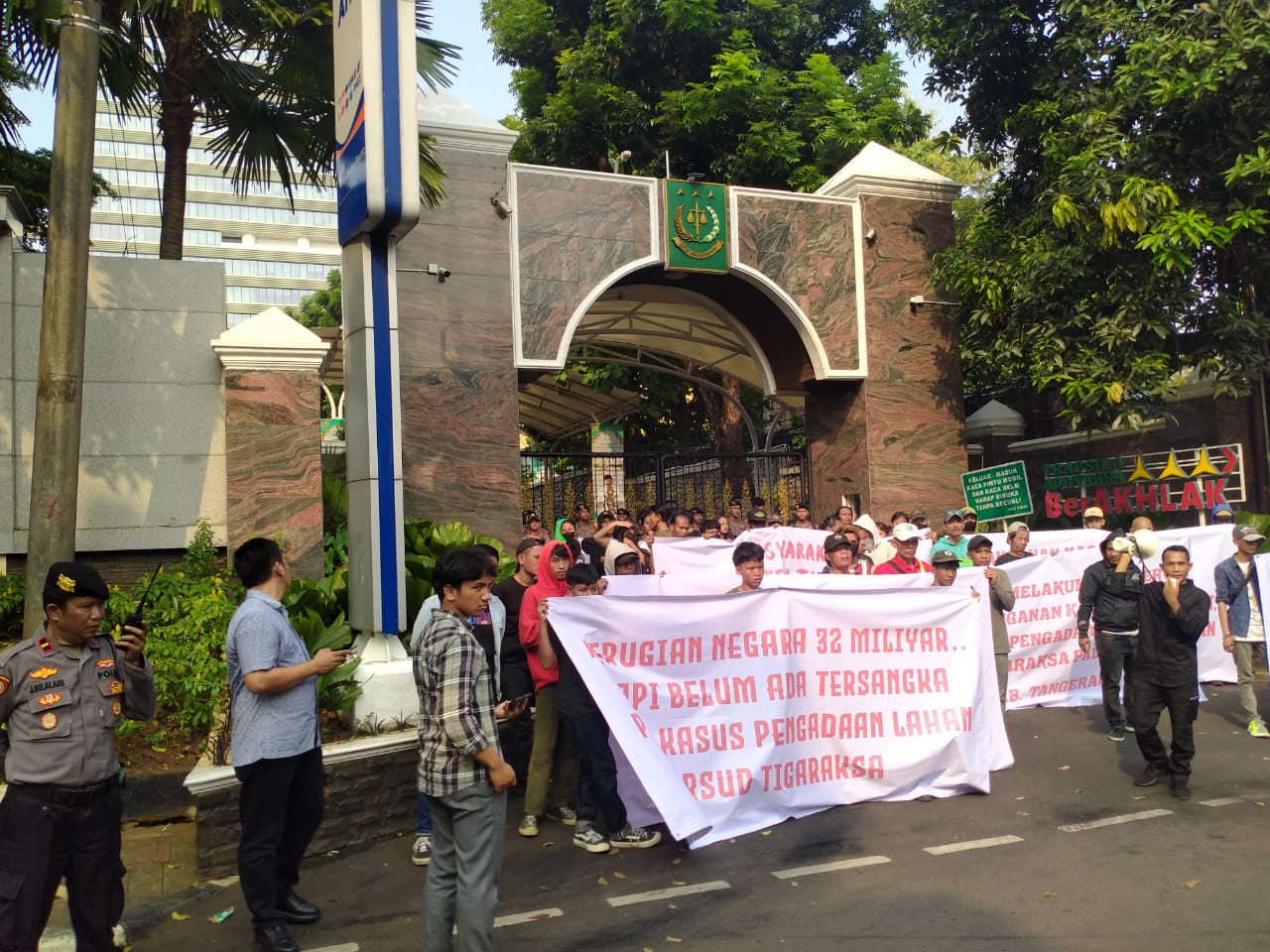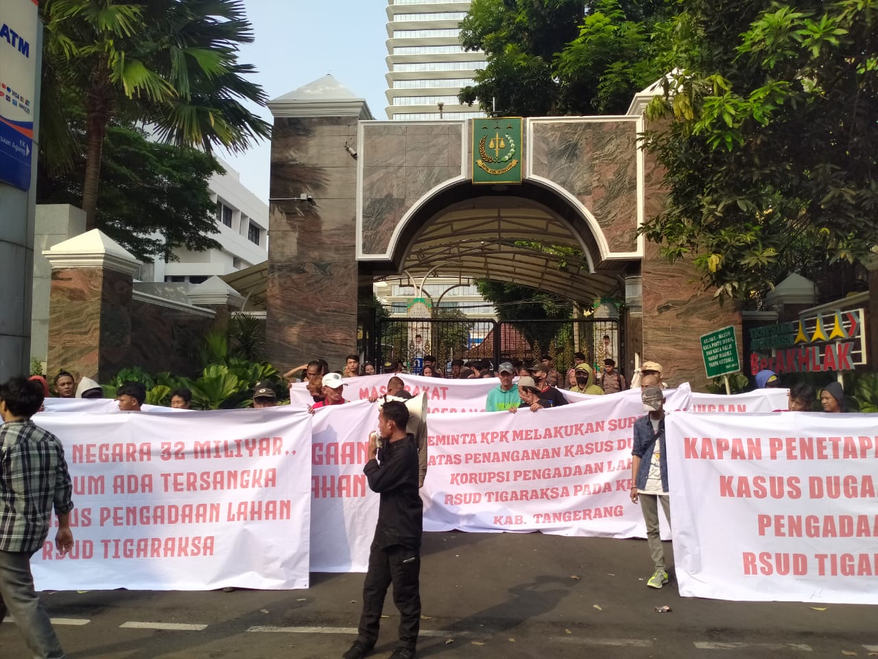 Selain gedung KPK Ratusan warga Kabupaten Tangerang juga menggelar aksi unjuk rasa di di depan gedung KEJAGUNG RI dengan Aksi mendesak Aparat Hukum dalam penyelesaian kasus dugaan korupsi pengadaan tanah RSUD Tigaraksa yang dinilai pihak massa tersebut pihak Kejaksaan terlalu berlarut dan tidak tidak ada kepastian hukum sampai sekarang.
