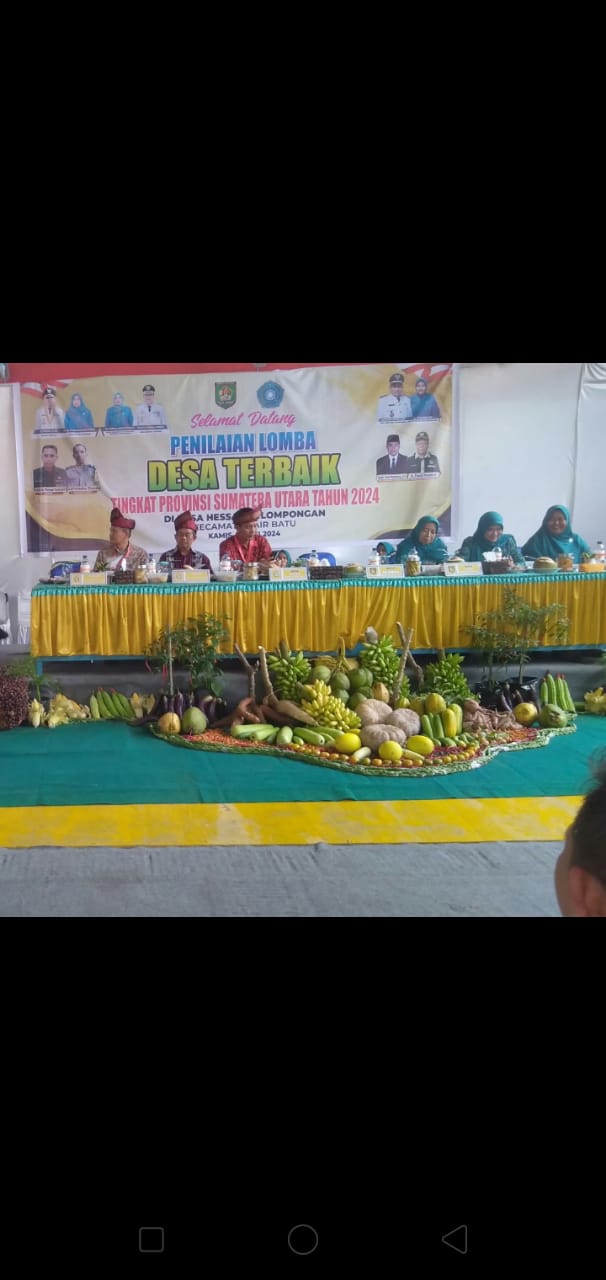 Tampak hadir Kepala Dinas Pemberdayaan Masyarakat Desa (PMD) Kabupaten Asahan,Ketua TP PKK Kabupaten Asahan,Ketua II Bidangnya Pendidikan dan Peningkatan Ekonomi Keluarga TP PKK Kabupaten Asahan,Camat Air Batu,Kades Hessa Perlompongan,BPD Hessa Perlompongan,Tim Penilaian Desa Provinsi Sumatera Utara dan hadirin lainnya.