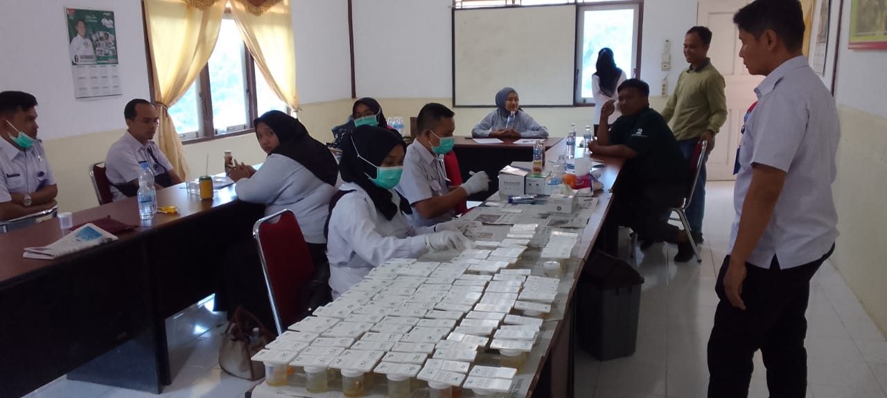SAWAHLUNTO (SUMBAR), SUARAPANCASILA. ID – BNN Kota Sawahlunto melaksanaan tes urin kepada karyawan CV. BMK. Hal ini merupakan kebijakan dari pemerintah untuk mendorong pihak swasta, lembaga kementerian pemerintah untuk berperan aktif dalam melaksanakan deteksi dini.