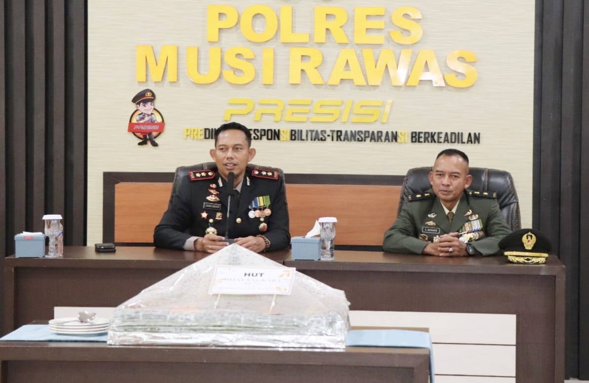 MUSI RAWAS (SUMSEL) SUARAPANCASILA.ID –Bertepatan dengan Hari Bhayangkara Ke-79, Polres Musi Rawas (Mura), menerima surprise Nasi Tumpeng dari Kodim 0406 Lubuklinggau, di Mapolres Mura, Kecamatan Muara Beliti, Kabupaten Mura, Selasa (1/6/2025).