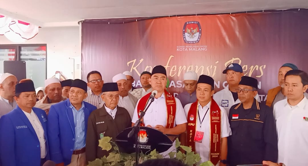 KOTA MALANG (JATIM), SUARAPANCASILA,ID-Diantar empat partai koalisi (PKB,Demokrat,PAN,dan Partai Umat), Kiai, Habaib, Ulama, Tokoh Masyarakat dan ribuan massa pendukungnya, Pasangan HM Anton-Dimyati Ayatullah resmi mendaftar sebagai Calon Walikota-Wakil Walikota Malang 2024 ke KPU, Jalan Bantaran No.6, RW.02, Purwantoro, Kec. Blimbing, Kota Malang, (28/8/2024).
