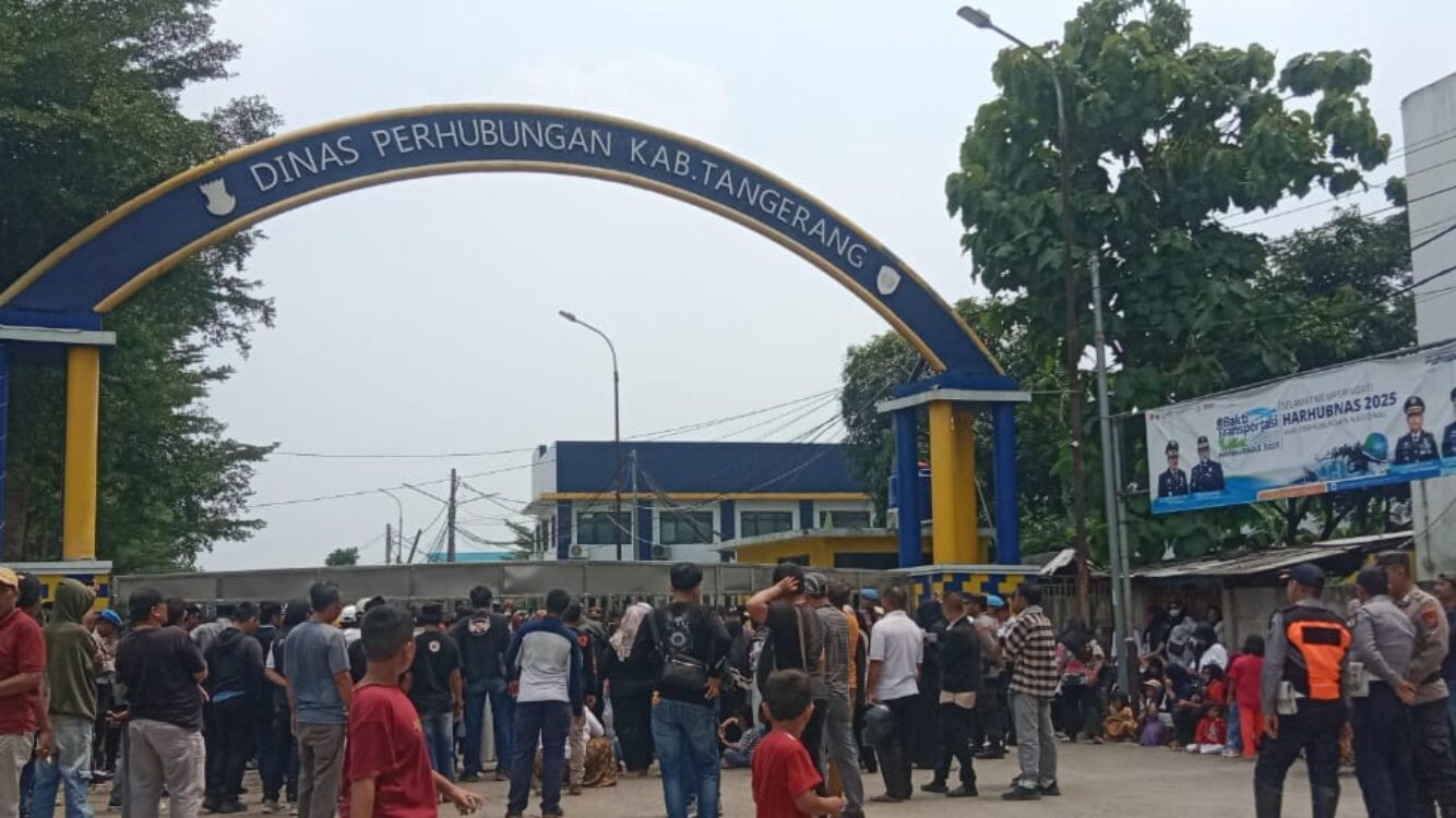 KABUPATEN TANGERANG (BANTEN), SUARAPANCASILA.ID – Aksi demo warga masyarakat di dua kecamatan yaitu Kecamatan Jayanti dan Kecamatan Balaraja menggruduk kantor Dinas Perhubungan Kabupaten Tangerang. Selasa (02/12/25).
