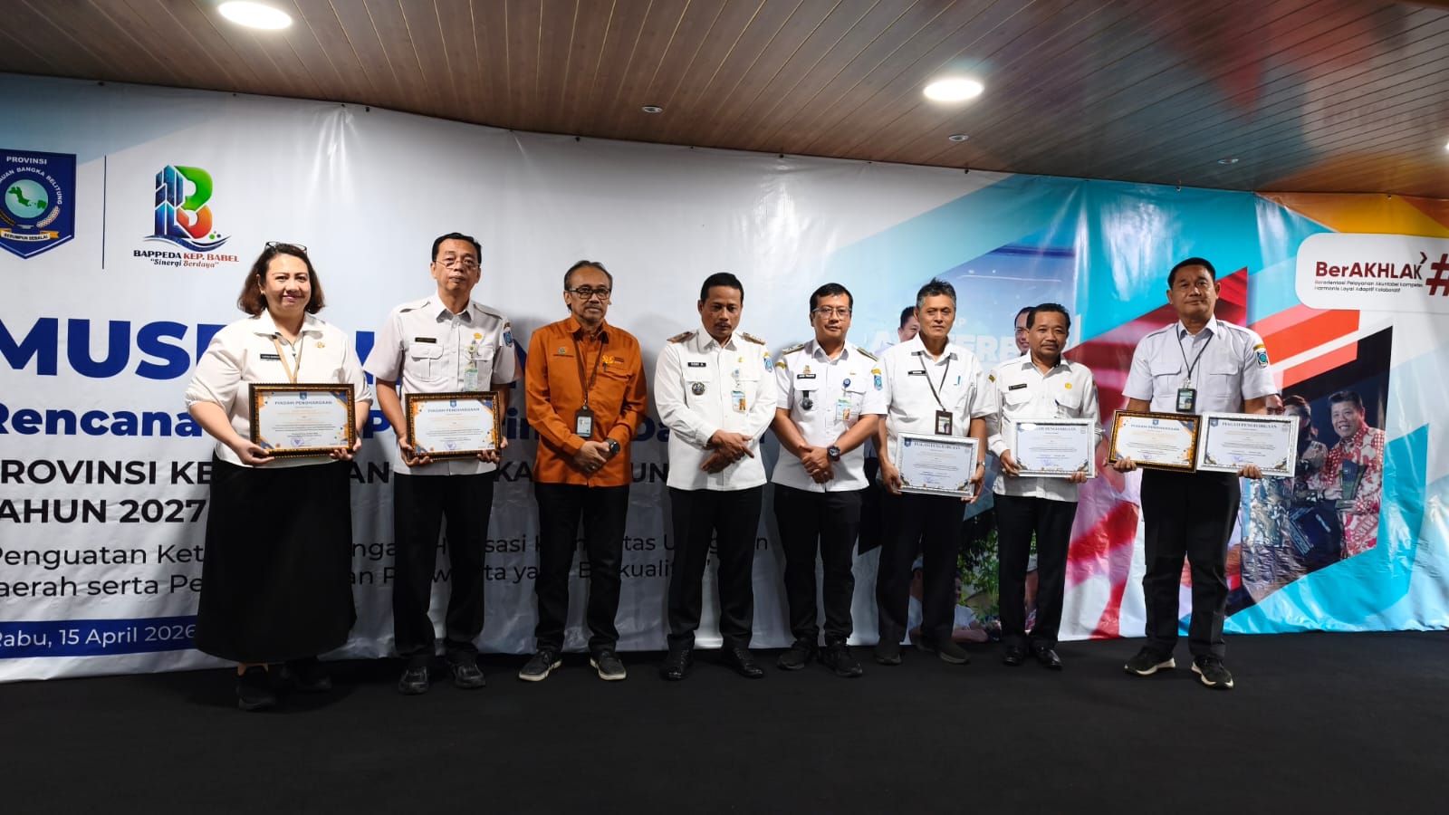 Penghargaan tersebut diserahkan oleh Penjabat (Pj) Sekretaris Daerah (Sekda), Fery Afriyanto, kepada Pelaksana Tugas (Plt) Kepala Diskominfo Babel, Fadjri Djagahitam, usai Musyawarah Perencanaan Pembangunan (Musrenbang) Rencana Kerja Pemerintah Daerah (RKPD) 2027, di ruang Pulau Ketawai, Kantor Bappeda Babel, Rabu (15/4/2026).