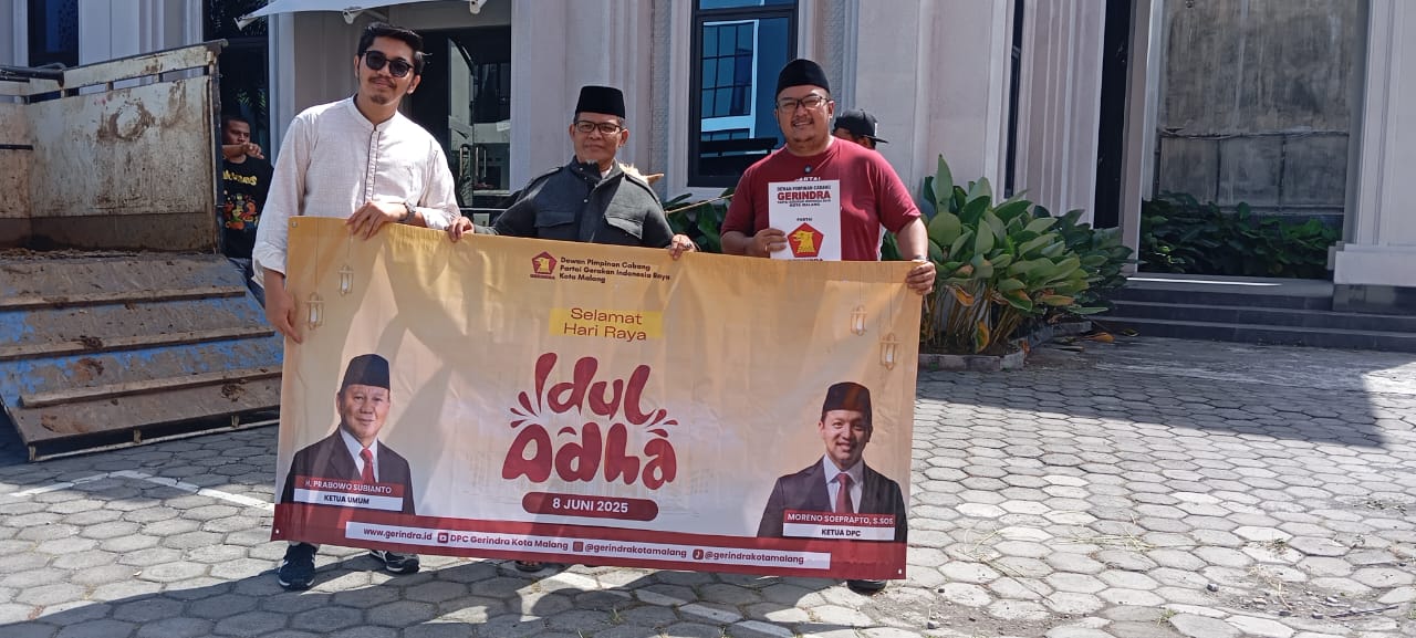 Ketua DPC Gerindra Kota Malang, Moreno Soeprapto melalui Wakil Ketua OKK partai, dalam hal ini Abiyyu Fitrah Pamungkas, menyampaikan penyerahan hewan kurban merupakan bentuk kepedulian partai terhadap masyarakat, dan komitmen untuk meningkatkan kesejahteraan umat.