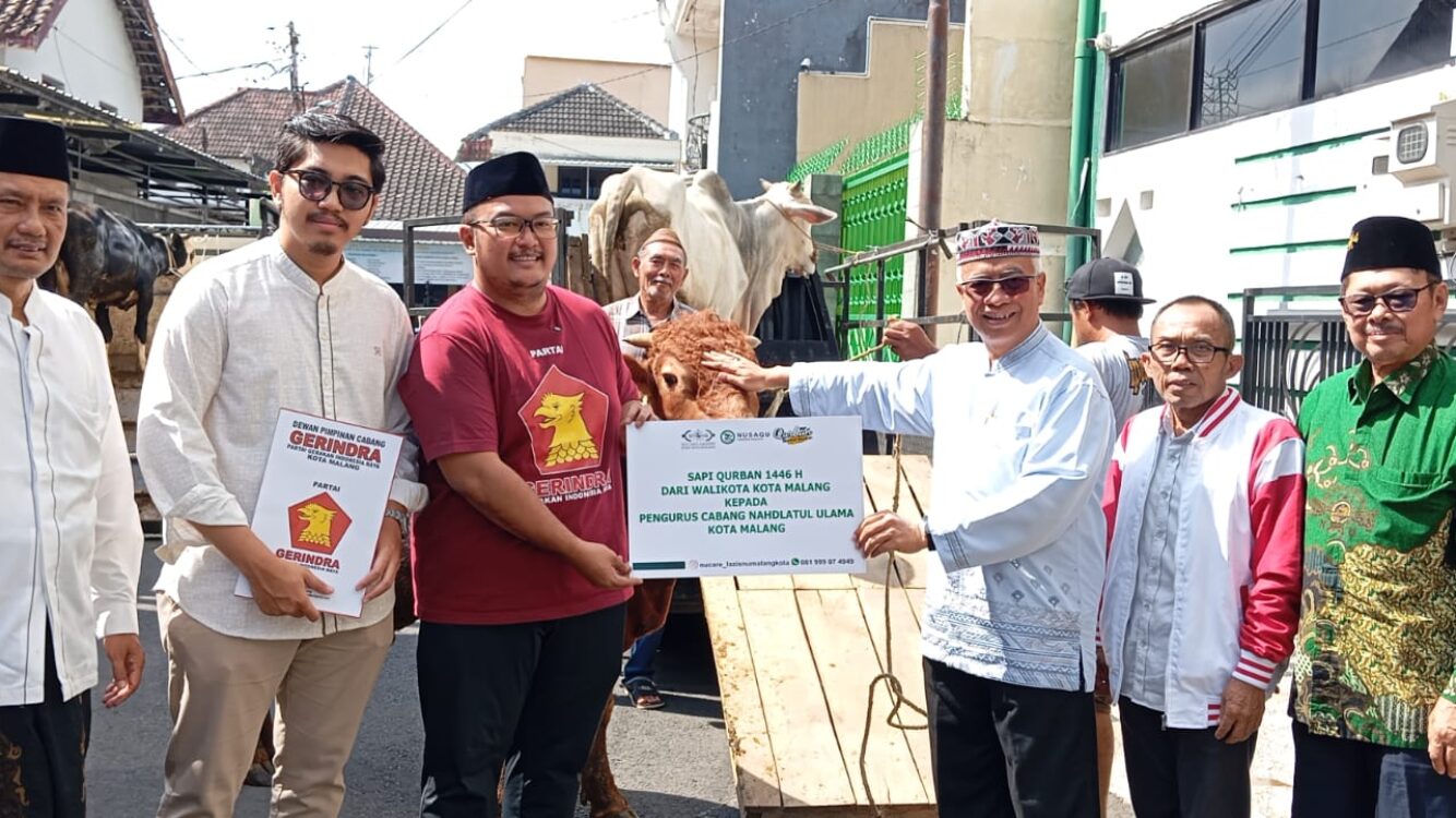 KOTA MALANG (JATIM), SUARAPANCASILA,ID- Dewan Pimpinan Cabang (DPC) Partai Gerakan Indonesia Raya (Gerindra) Kota Malang, menyerahkan hewan kurban kepada Pengurus Besar Nahdlatul Ulama (PBNU) dan Muhammadiyah dalam rangka memperingati Hari Raya Idul Adha.