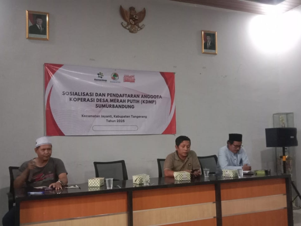 KAB TANGERANG (BANTEN) SUARAPANCASILA.ID – Berdasarkan Instruksi Presiden Republik Indonesia Nomor 9 Tahun 2025 tentang Percepatan dan Pembentukan Koperasi Desa/Kelurahan Merah Putih, serta Peraturan Menteri Koperasi Nomor 2 Tahun 2025 tentang Pengembangan Usaha Koperasi Desa/Kelurahan Merah Putih, dan Instruksi Bupati Kabupaten Tangerang Nomor B/400.4.3/8623/VIII/Diskum/2025 tentang Himbauan Menjadi Anggota Koperasi Merah Putih. Koperasi Desa Merah Putih Desa Sumur Bandung menggelar kegiatan sosialisasi sekaligus pendaftaran anggota.