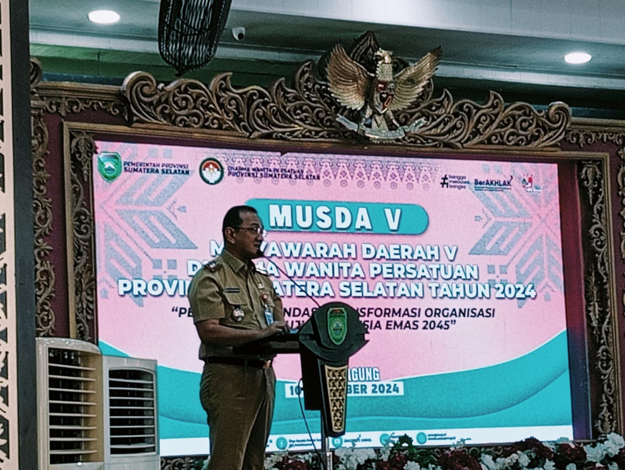 Palembang,Suara Pancasila.id – Pemerintah Provinsi (Pemprov) Sumatera Selatan (Sumsel) dalam hal Penjabat Gubernur Sumsel Elen Setiadi, S.H., MSE yang diwakili oleh Sekretaris Daerah (Sekda) Provinsi Sumsel Drs H Edward Candra, M.H menghadiri serta membuka dengan pemukulan gong tanda di resminya Musyawarah Daerah (Musda) Ke V Tahun 2024 Dharma Wanita Persatuan (DWP) Provinsi Sumsel yang dilaksanakan di Griya Agung Palembang, Selasa (10/12/2024).