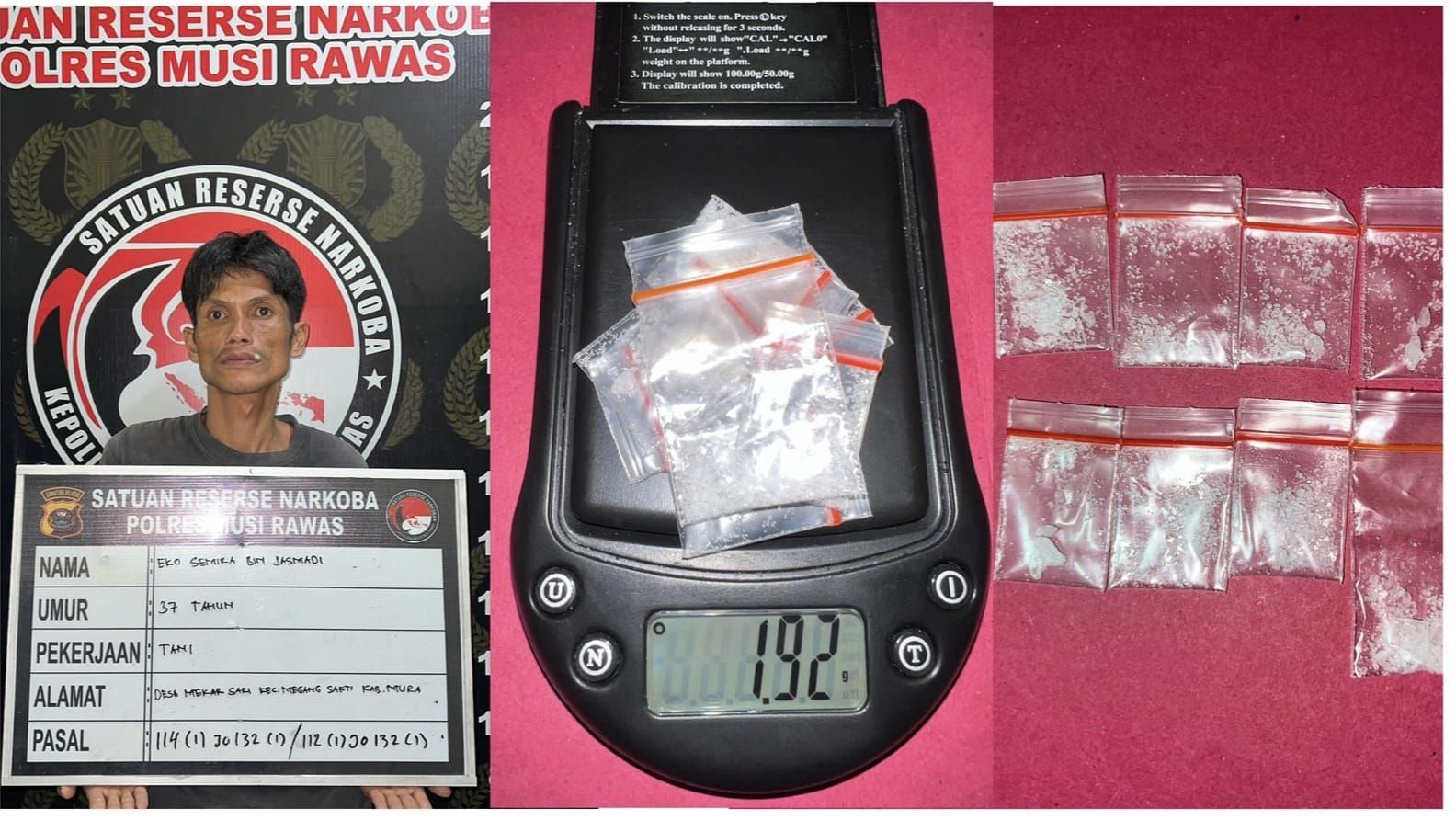 MUSI RAWAS, SUARAPANCASILA. ID – Eagle Squad Satres Narkoba Polres Musi Rawas (Mura), berhasil membekuk terduga penyalaguna sekaligus pengendar narkotika jenis sabu ditoilet umum Pasar Kalangan di Desa Campur Sari, Kecamatan Megang Sakti, Kabupaten Mura, sekitar pukul 15.40 WIB, Jumat (19/4/2024)