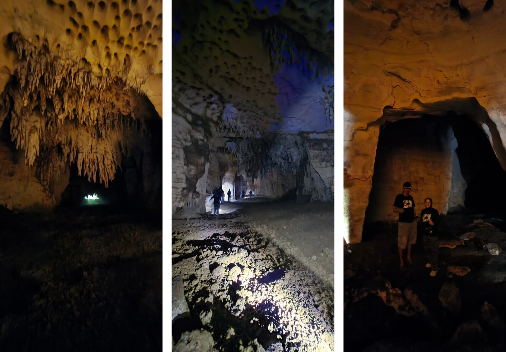 Setibanya di mulut gua, ketegangan di atas dompeng berganti dengan decak kagum. Pengunjung disambut oleh keindahan stalagtit dan stalagmit yang menjulang. Di dalam gua, tim merasakan suasana bak berada di dalam sebuah istana megah. Dinding dan langit-langit gua terukir dengan guratan unik yang menakjubkan.