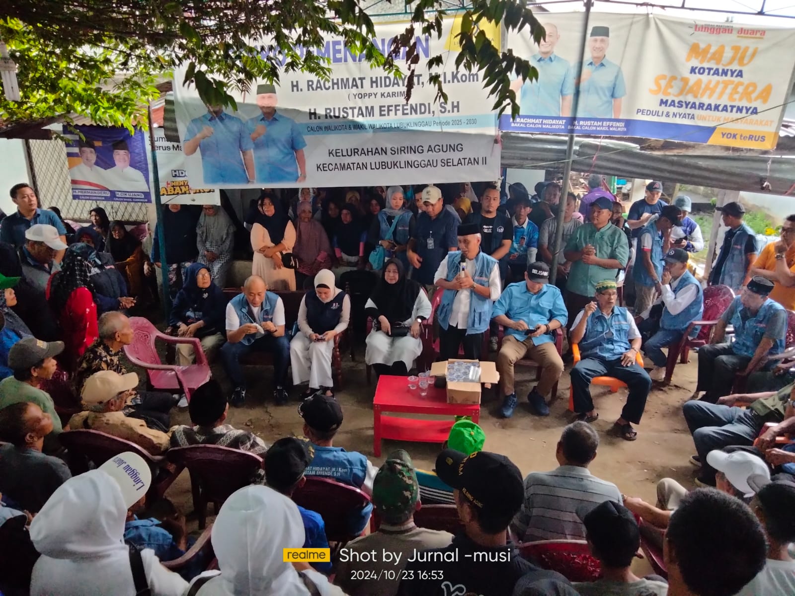LUBUKLINGGAU (SUMSEL), SUARAPANCASILA.ID –Pasangan Botak-peci H Rahmat Hidayat dan H Rustam Efendi blusukan ke warga Siring agung, untuk menyampaikan visi-misi dan program kerja pada, Rabu sore 23-10-2014