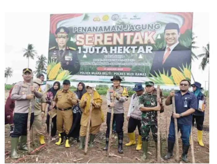 LUBUKLINGGAU (SUMSEL), SUARAPANCASILA.ID – Kepolisian Resor (Polres) Lubuklinggau bersama Pemerintah Kota (Pemkot) Lubuklinggau melaksanakan program penanaman jagung serentak seluas 7 hektare sebagai bagian dari target nasional 1 juta hektare. Program ini merupakan kolaborasi antara Polri dan Kementerian Pertanian RI dalam rangka mendukung Swasembada Pangan 2025. Kegiatan tersebut dilaksanakan di Kelurahan Rahma, Kecamatan Lubuklinggau Selatan I, Selasa (21/01/2025).