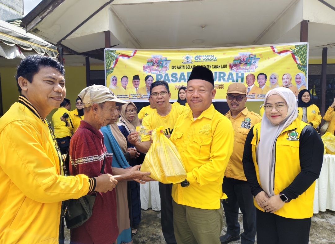 Pelaihari(KALSEL), SUARA PANCASILA.ID — Di tengah tekanan harga kebutuhan pokok yang masih dirasakan masyarakat, Partai Golkar Tanah Laut memilih turun langsung ke halaman rumahnya sendiri. Senin, 22 Desember 2025, halaman Sekretariat DPD Partai Golkar Kabupaten Tanah Laut di Jalan A. Yani No. 2, Kelurahan Angsau, Kecamatan Pelaihari, berubah menjadi ruang temu antara partai politik dan denyut kebutuhan rakyat.