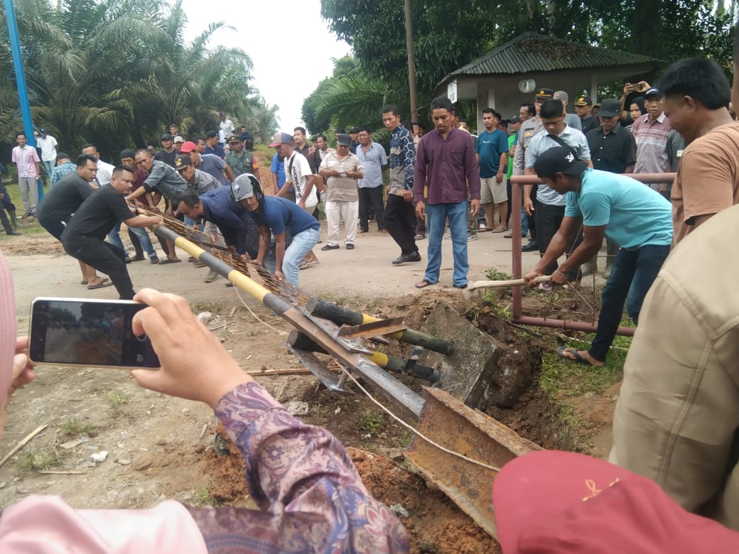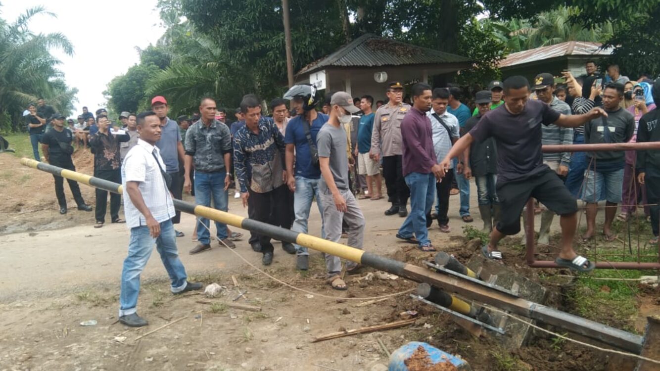 ASAHAN(SUMUT),SUARAPANCASILA.ID | PT. Padasa Enam Utama Teluk Dalam melakukan penutupan Jalan Kabupaten yang menghubungkan dari Desa Air Teluk Kiri dengan Desa Perkebunan Teluk Dalam, Kabupaten Asahan dengan portal palang besi.