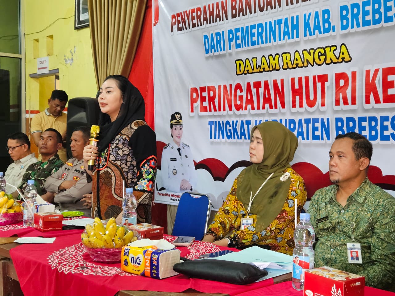 Sebanyak 3 keluarga di Desa Kupu menerima bantuan perbaikan rumah, sementara 45 keluarga lainnya, yakni 25 dari Desa Kupu dan 20 dari Dukuhwringin mendapatkan fasilitas jamban sehat. Penyerahan bantuan dilakukan langsung oleh Bupati Brebes Hj Paramitha Widya Kusuma SE MM di Balai Desa Kupu, Jumat (22/8/2025).