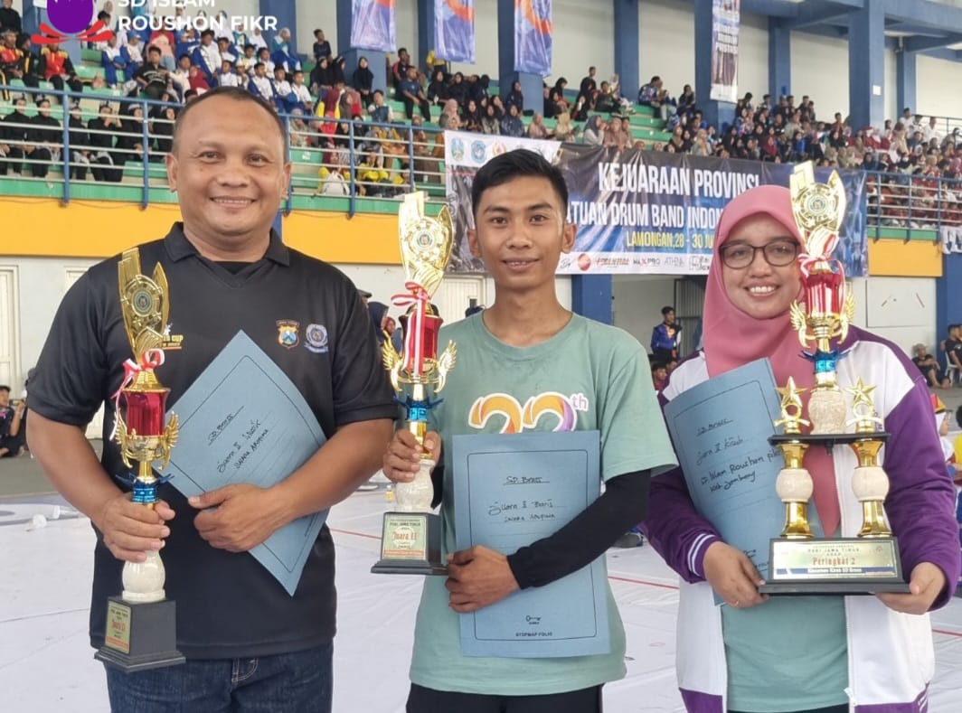 Kejuaraan Provinsi (Kejurprov) drumband diikuti SD Roushon Fikr di Alun-Alun Kabupaten Lamongan, Minggu (30/06/2024). Mereka bertarung dengan grup drumband dari berbagai kota di Jawa Timur.