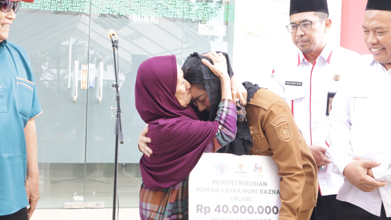 BREBES (JATENG), SUARAPANCASILA.ID – Suasana haru menyelimuti Kantor Baznas Brebes, Selasa (13/1/2026). Bupati Brebes Hj Paramitha Widya Kusuma SE MM mendapat pelukan dan ciuman dari Ibu Suprapti, warga Desa Karangmalang Kecamatan Ketanggungan, sesaat setelah menerima bantuan Rumah Layak Huni Baznas (RLHB) senilai Rp40 juta.