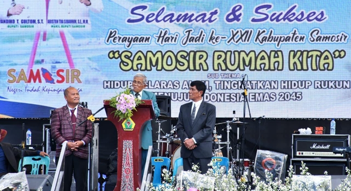 Ia menegaskan, kemajuan Samosir saat ini merupakan hasil kerja keras pemerintah daerah yang didukung sinergitas seluruh pemangku kepentingan. Hal itu tercermin dari meningkatnya kunjungan wisatawan yang berdampak langsung terhadap pergerakan ekonomi masyarakat serta peningkatan Pendapatan Asli Daerah (PAD). “Di usia 22 tahun, Samosir telah menunjukkan kemandiriannya dengan capaian PAD yang meningkat. Ini membuktikan Samosir tetap kuat, kokoh, dan terus berinovasi, baik di bidang infrastruktur, pariwisata, maupun pertanian,” ujarnya.