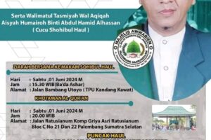 Haul Ustad Ali Umar Toyib Yang Ke-16 Tahun turut di hadiri Pj Gebernur Sumsel Agus Fatnoni, Pj Walikota Palembang Ratu Dewa, Forum Cakar Sriwijaya Sumsel Ketua umum Forum cakar sriwijaya Sumsel H. Soleh dan Ketua Kota Palembang M Ibnu Fauzan (Tommy) serta tamu undangan.